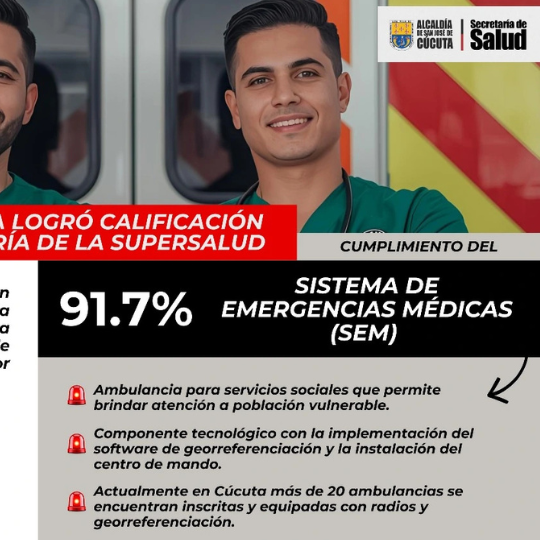 Desde 2024 la alcaldía ha decidido enfocar sus esfuerzos en el fortalecimiento de este sistema de atención, con el propósito de alcanzar un 100% de cumplimiento en la próxima auditoría de la Supersalud. Con la georreferenciación ya gestionada para el año 2026 y el compromiso institucional de todos los actores del sector, Cúcuta aspira a convertirse en el primer Sistema de Emergencias Médicas de la región robusteciendo su liderazgo y capacidad de respuesta ante cualquier eventualidad.